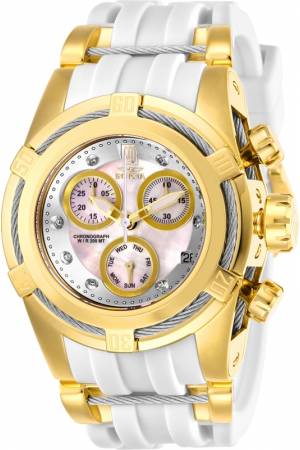 Band For Invicta JT 26284, Band Material Silicone, Stainless Steel, Band Color White, Gold, Band Width 27 mm, Band Length 185 mm, Buckle Type Buckle, Clasp Type