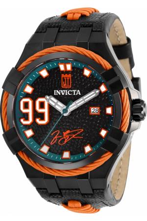Band For Invicta JT 28523, Band Material Leather, Band Color Orange, Black, Band Width 28 mm, Band Length 220 mm, Buckle Type Buckle, Clasp Type Regular