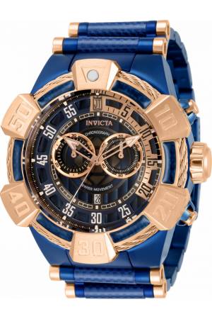 Band For Invicta JT 32835, Band Material Carbon Fiber, Stainless Steel, Band Color Blue, Rose Gold, Band Width 32 mm, Band Length 185 mm, Buckle Type Fold over safety, Clasp Type