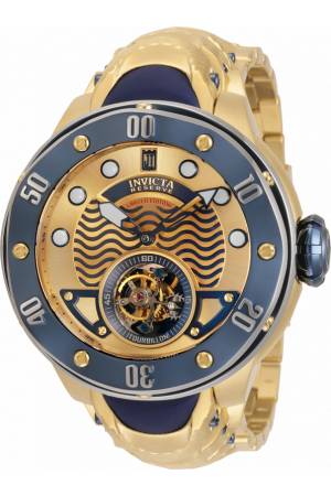Band For Invicta JT 34209, Band Material Silicone, Stainless Steel, Band Color Blue, Gold, Band Width 30.4 mm, Band Length 210 mm, Buckle Type Fold over safety, Clasp Type Deployment, Safety
