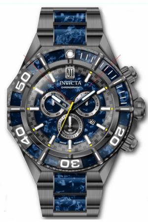 Band For Invicta JT 40208, Band Material Resin, Stainless Steel, Band Color Blue, Gunmetal, Band Width 32 mm, Band Length 197 mm, Buckle Type Fold over safety, Clasp Type