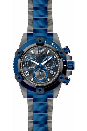 Band For Invicta JT 51286, Band Material Stainless Steel, Band Color Blue, Gunmetal, Band Width 24 mm, Band Length 210 mm, Buckle Type Fold over safety, Clasp Type
