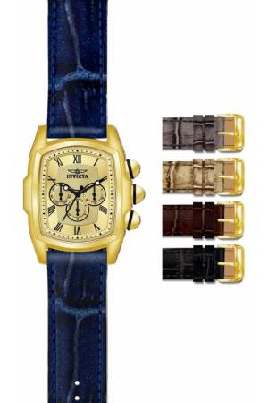 Band For Invicta Lupah 14937, Band Material Leather, Band Color Blue, Band Width 26 mm, Band Length 231 mm, Buckle Type Buckle, Clasp Type Regular