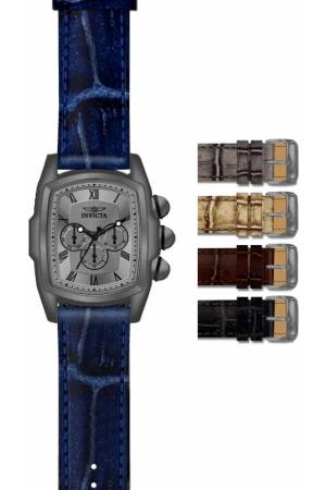 Band For Invicta Lupah 14939, Band Material Leather, Band Color Blue, Band Width 26 mm, Band Length 231 mm, Buckle Type Buckle, Clasp Type Regular