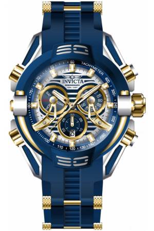 Band For Invicta Mammoth 37531, Band Material Silicone, Stainless Steel, Band Color Blue, Gold, Band Width 26 mm, Band Length 190 mm, Buckle Type Buckle, Clasp Type