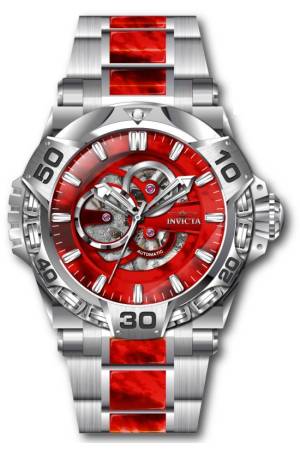 Band For Invicta Mammoth 45597, Band Material Mother of Pearl, Stainless Steel, Band Color Red, Steel, Band Width 32 mm, Band Length 195 mm, Buckle Type Fold over safety, Clasp Type