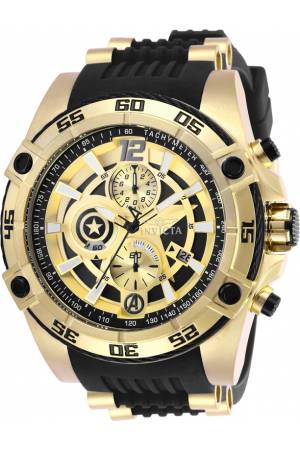 Band For Invicta Marvel 26781, Band Material Silicone, Stainless Steel, Band Color Black, Gold, Band Width 26 mm, Band Length 200 mm, Buckle Type Buckle, Clasp Type Regular