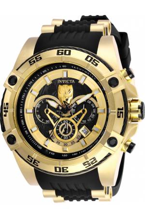 Band For Invicta Marvel 26803, Band Material Silicone, Stainless Steel, Band Color Black, Gold, Band Width 26 mm, Band Length 200 mm, Buckle Type Buckle, Clasp Type Regular