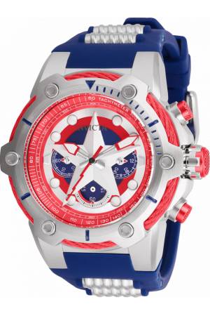 Band For Invicta Marvel 26894, Band Material Silicone, Stainless Steel, Band Color Blue, Steel, Band Width 30 mm, Band Length 205 mm, Buckle Type Buckle, Clasp Type Regular