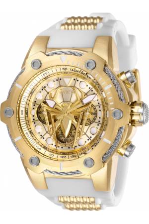 Band For Invicta Marvel 26916, Band Material Silicone, Stainless Steel, Band Color Gold, White, Band Width 30 mm, Band Length 205 mm, Buckle Type Buckle, Clasp Type Regular