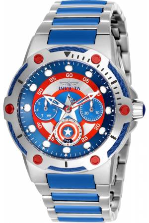Band For Invicta Marvel 26983, Band Material Stainless Steel, Band Color Blue, Steel, Band Width 22 mm, Band Length 170 mm, Buckle Type Buckle, Clasp Type Regular