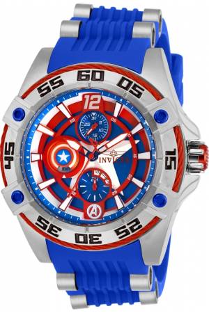 Band For Invicta Marvel 27024, Band Material Silicone, Stainless Steel, Band Color Blue, Steel, Band Width 22 mm, Band Length 200 mm, Buckle Type Buckle, Clasp Type Regular