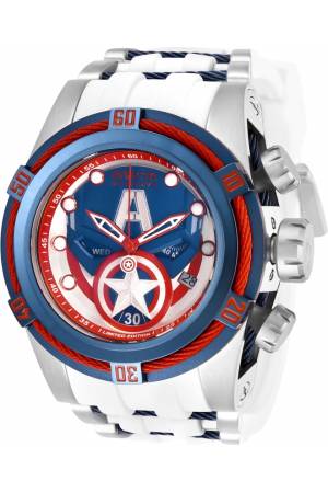 Band For Invicta Marvel 27046, Band Material Silicone, Stainless Steel, Band Color Dark Blue, White, Steel, Band Width 35 mm, Band Length 210 mm, Buckle Type Buckle, Clasp Type Regular