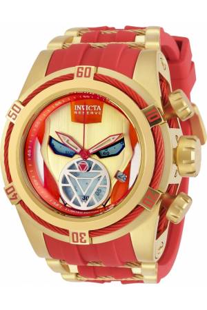 Band For Invicta Marvel 27101, Band Material Silicone, Stainless Steel, Band Color Red, Gold, Band Width 35 mm, Band Length 210 mm, Buckle Type Buckle, Clasp Type Regular