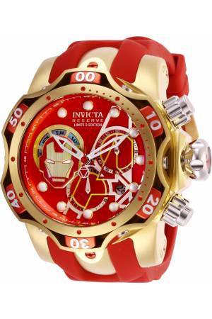 Band For Invicta Marvel 27176, Band Material Silicone, Stainless Steel, Band Color Red, Gold, Band Width 26 mm, Band Length 210 mm, Buckle Type Buckle, Clasp Type Regular