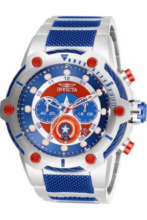 Band For Invicta Marvel 27965, Band Material Stainless Steel, Band Color Blue, Steel, Band Width 30 mm, Band Length 197.5 mm, Buckle Type Fold over safety, Clasp Type Foldover, Safety