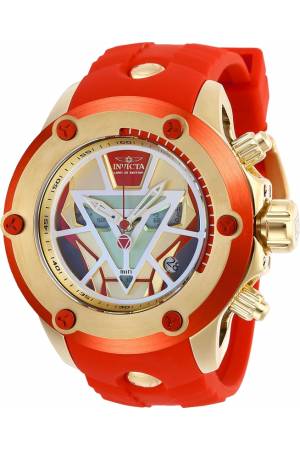 Band For Invicta Marvel 28421, Band Material Silicone, Stainless Steel, Band Color Red, Gold, Band Width 26 mm, Band Length 210 mm, Buckle Type Buckle, Clasp Type Regular