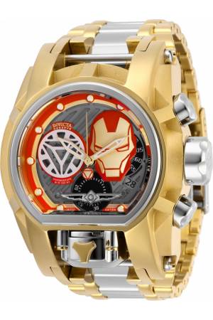 Band For Invicta Marvel 29463, Band Material Stainless Steel, Band Color Gold, Steel, Band Width 34 mm, Band Length 210 mm, Buckle Type Fold over safety, Clasp Type Deployment, Safety