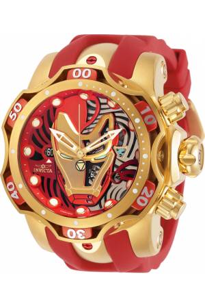 Band For Invicta Marvel 30552, Band Material Silicone, Stainless Steel, Band Color Red, Gold, Band Width 26 mm, Band Length 210 mm, Buckle Type Buckle, Clasp Type Buckle