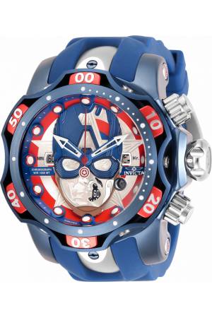 Band For Invicta Marvel 30628, Band Material Silicone, Stainless Steel, Band Color Blue, Steel, Band Width 26 mm, Band Length 210 mm, Buckle Type Buckle, Clasp Type
