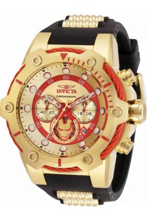Band For Invicta Marvel 32499, Band Material Silicone, Stainless Steel, Band Color Black, Gold, Band Width 30 mm, Band Length 210 mm, Buckle Type Buckle, Clasp Type