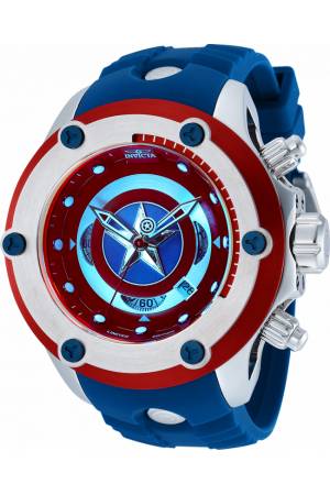 Band For Invicta Marvel 36339, Band Material Silicone, Stainless Steel, Band Color Blue, Steel, Band Width 26 mm, Band Length 210 mm, Buckle Type Buckle, Clasp Type
