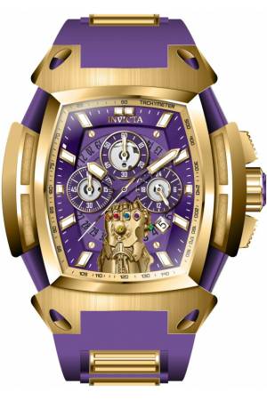 Band For Invicta Marvel 37390, Band Material Silicone, Stainless Steel, Band Color Purple, Gold, Band Width 31 mm, Band Length 190 mm, Buckle Type Buckle, Clasp Type