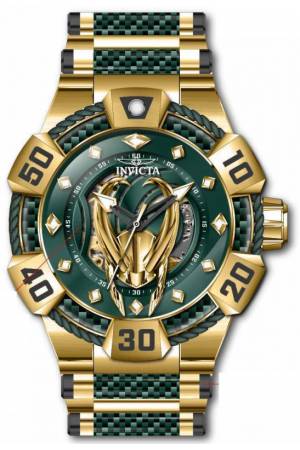 Band For Invicta Marvel 37599, Band Material Glass Fiber, Stainless Steel, Band Color Green, Gold, Band Width 32 mm, Band Length 190 mm, Buckle Type Fold over safety, Clasp Type