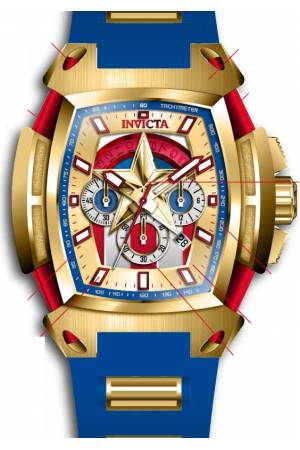 Band For Invicta Marvel 38380, Band Material Silicone, Stainless Steel, Band Color Blue, Gold, Band Width 31 mm, Band Length 190 mm, Buckle Type Buckle, Clasp Type