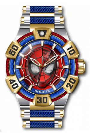 Band For Invicta Marvel 41020, Band Material Glass Fiber, Stainless Steel, Band Color Blue, Gold, Steel, Band Width 32 mm, Band Length 190 mm, Buckle Type Fold over safety, Clasp Type