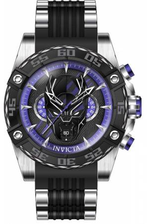 Band For Invicta Marvel 41229, Band Material Silicone, Stainless Steel, Band Color Black, Steel, Band Width 26 mm, Band Length 210 mm, Buckle Type Buckle, Clasp Type