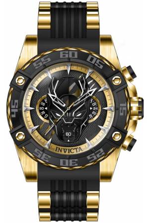 Band For Invicta Marvel 41230, Band Material Silicone, Stainless Steel, Band Color Black, Gold, Band Width 26 mm, Band Length 210 mm, Buckle Type Buckle, Clasp Type