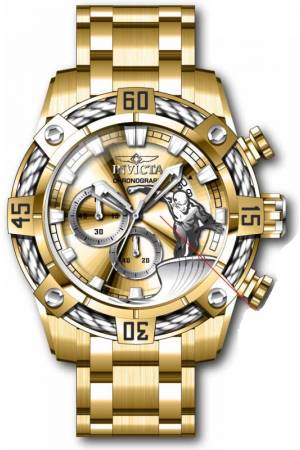 Band For Invicta Marvel 41304, Band Material Stainless Steel, Band Color Gold, Band Width 26 mm, Band Length 190 mm, Buckle Type Fold over safety, Clasp Type