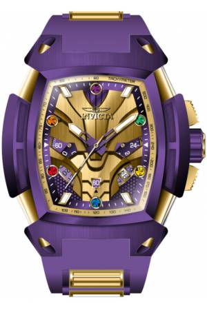 Band For Invicta Marvel 43163, Band Material Silicone, Stainless Steel, Band Color Purple, Gold, Band Width 30 mm, Band Length 190 mm, Buckle Type Buckle, Clasp Type