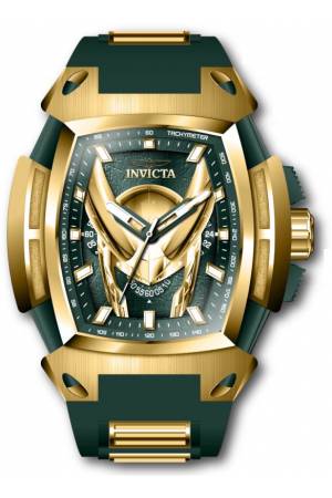Band For Invicta Marvel 43658, Band Material Silicone, Stainless Steel, Band Color Green, Gold, Band Width 31 mm, Band Length 210 mm, Buckle Type Buckle, Clasp Type