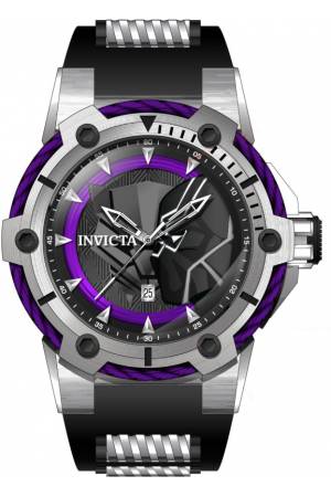 Band For Invicta Marvel 43830, Band Material Silicone, Stainless Steel, Band Color Black, Steel, Band Width 30 mm, Band Length 210 mm, Buckle Type Buckle, Clasp Type