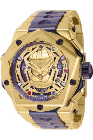 Band For Invicta Marvel 44490, Band Material Stainless Steel, Band Color Purple, Gold, Band Width 34.70 mm, Band Length 210 mm, Buckle Type Fold over safety, Clasp Type Deployment, Safety