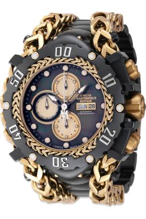 Band For Invicta Masterpiece 44566, Band Material Stainless Steel, Band Color Black, Gold, Band Width 41 mm, Band Length 210 mm, Buckle Type Fold over safety, Clasp Type Deployment, Safety