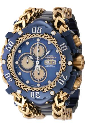 Band For Invicta Masterpiece 44567, Band Material Stainless Steel, Band Color Dark Blue, Gold, Band Width 41 mm, Band Length 210 mm, Buckle Type Fold over safety, Clasp Type Deployment, Safety