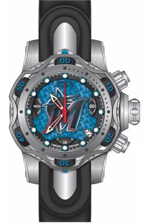 Band For Invicta MLB 41856, Band Material Aluminium, Silicone, Stainless Steel, Band Color Blue, Black, Steel, Band Width 20 mm, Band Length 185 mm, Buckle Type Buckle, Clasp Type Regular