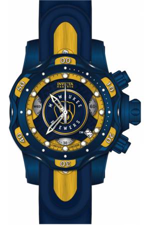Band For Invicta MLB 41878, Band Material Aluminium, Silicone, Stainless Steel, Band Color Yellow, Blue, Steel, Band Width 20 mm, Band Length 185 mm, Buckle Type Buckle, Clasp Type Regular