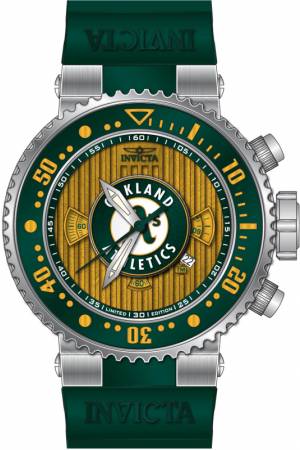 Band For Invicta MLB 42379, Band Material Silicone, Band Color Green, Band Width 29.8 mm, Band Length 210 mm, Buckle Type Buckle, Clasp Type