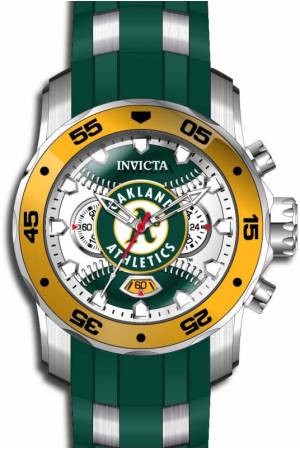 Band For Invicta MLB 42848, Band Material Silicone, Stainless Steel, Band Color Green, Steel, Band Width 26 mm, Band Length 190 mm, Buckle Type Buckle, Clasp Type