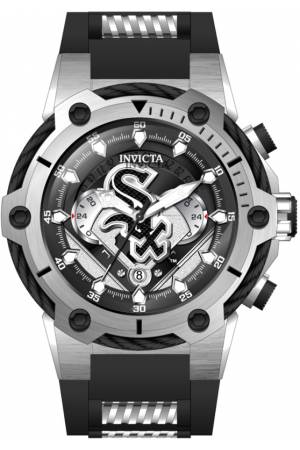 Band For Invicta MLB 43487, Band Material Silicone, Stainless Steel, Band Color Black, Steel, Band Width 30 mm, Band Length 210 mm, Buckle Type Buckle, Clasp Type