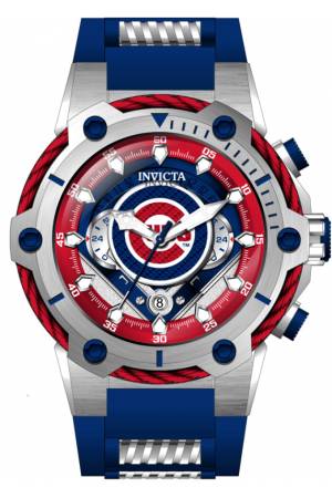 Band For Invicta MLB 43488, Band Material Silicone, Stainless Steel, Band Color Blue, Steel, Band Width 30 mm, Band Length 210 mm, Buckle Type Buckle, Clasp Type