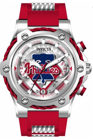 Band For Invicta MLB 43534, Band Material Silicone, Stainless Steel, Band Color Red, Steel, Band Width 22 mm, Band Length 200 mm, Buckle Type Buckle, Clasp Type