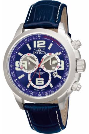 Band For Invicta Specialty 0146, Band Material Leather, Band Color Blue, Band Width 22 mm, Band Length 225 mm, Buckle Type Buckle, Clasp Type Safety, Foldover