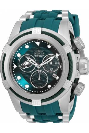 Band For Invicta NFL 30248, Band Material Silicone, Stainless Steel, Band Color Green, Steel, Band Width 35 mm, Band Length 210 mm, Buckle Type Buckle, Clasp Type Regular