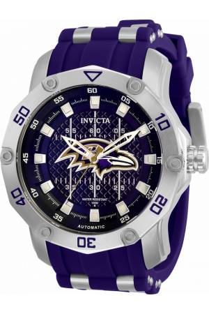 Band For Invicta NFL 32010, Band Material Stainless Steel, Silicone, Band Color Steel, Purple, Band Width 26 mm, Band Length 200 mm, Buckle Type Buckle, Clasp Type Regular