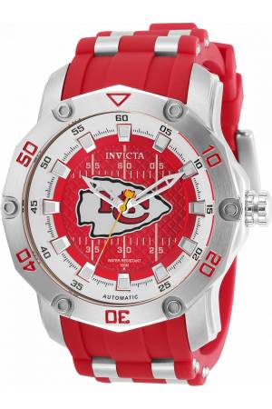 Band For Invicta NFL 32023, Band Material Stainless Steel, Silicone, Band Color Steel, Red, Band Width 26 mm, Band Length 200 mm, Buckle Type Buckle, Clasp Type Regular
